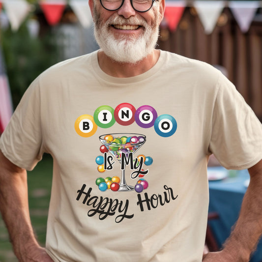 Bingo Is My Happy Hour Funny T-Shirts for Bingo Night