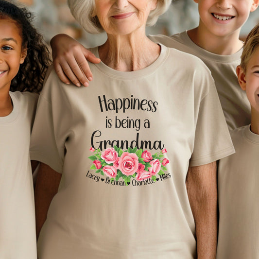 Happiness Is Being A Grandma Roses T-Shirts With Grandkid Names