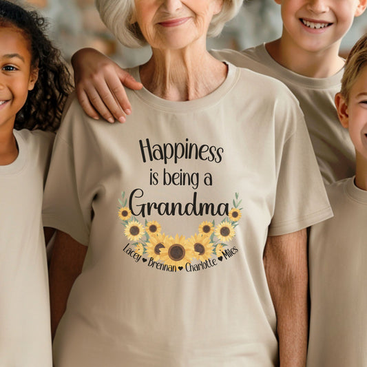 Happiness Is Being A Grandma Sunflowers T-Shirts With Grandkid Names