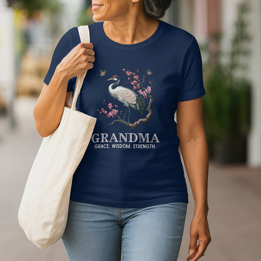 Customizable Asian Inspired Grandma T-Shirts With Crane and Butterfly