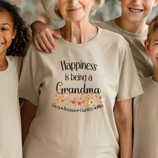 Happiness Is Being A Grandma Wildflowers T-Shirts With Grandkid Names