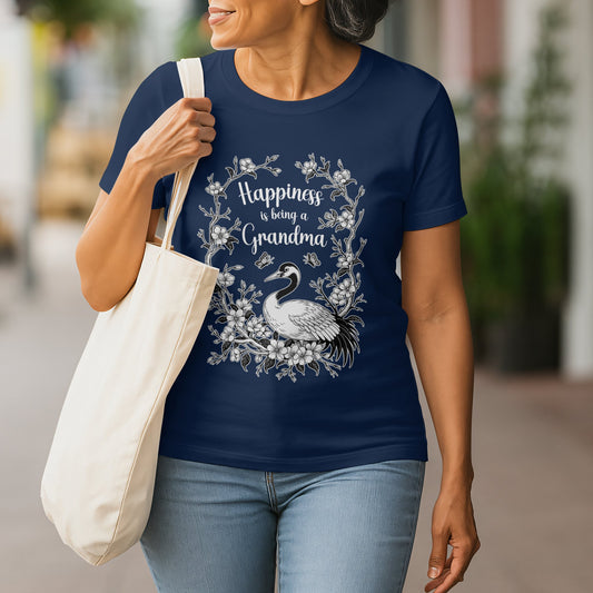 Customizable Happiness is Being a Grandma T-Shirts With Crane and Cherry Blossom