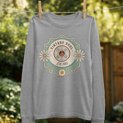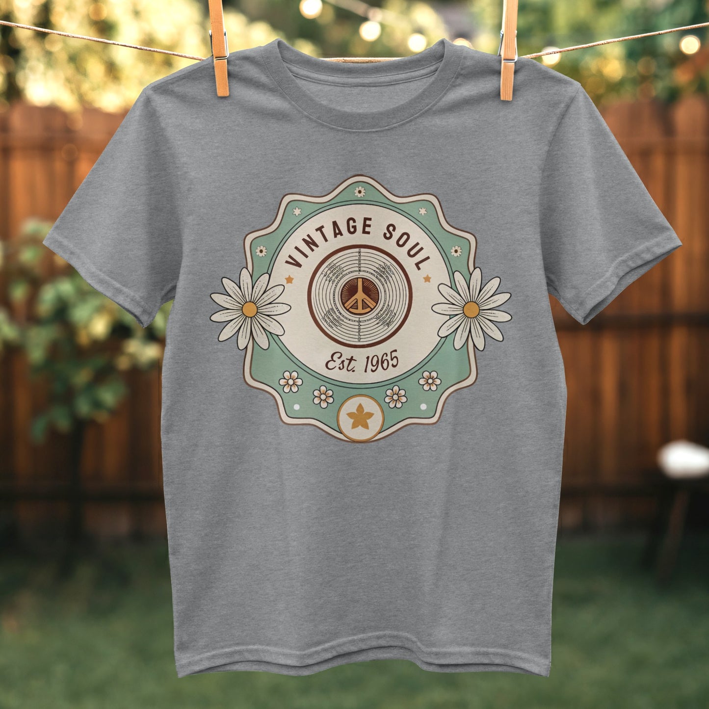 ☮️ Showcases a unique "Vintage Soul Est. 1965" design with a peace sign, perfect for vintage lovers